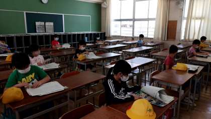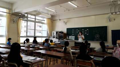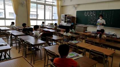 新校舎は、天井が従来の教室よりも高いです。
