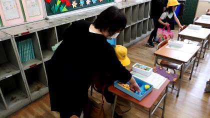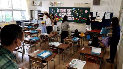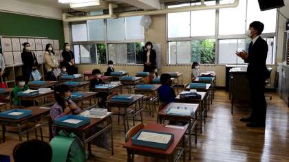 授業をうける教室にも入り、荷物整理をしたり、ためしに座ってみたり。