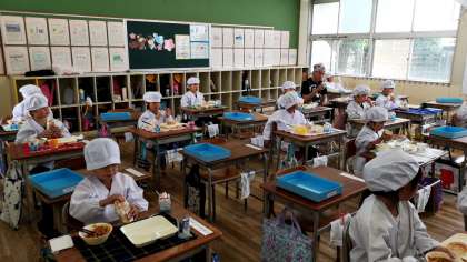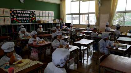 一年生は、小学校に入って初めての給食です。