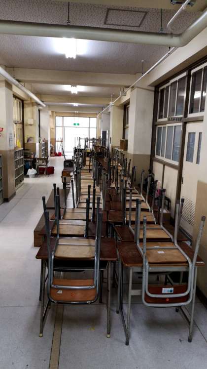 机を全部ろうかに出したクラスも。