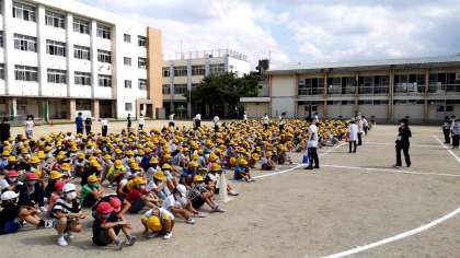新しい運動場に全員集まるのは、今年度初めてでした。