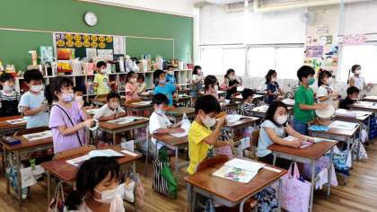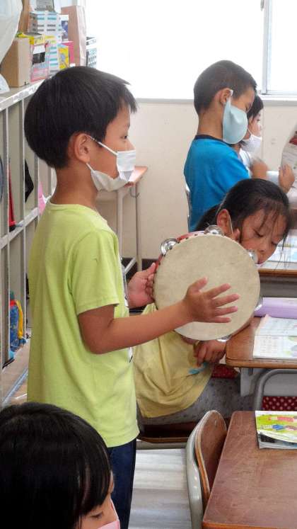 タンバリンや鈴など、一年生の教室から合奏の音色が。。