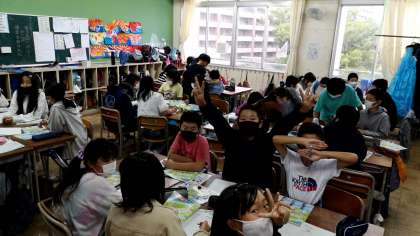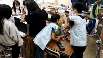 六年生は、修学旅行に向け、話し合ったり、出し物の練習をしたり。