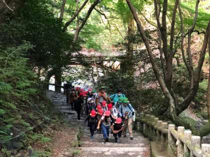 箕面の滝に到着しました。天気が良く汗ばむ気候です。
