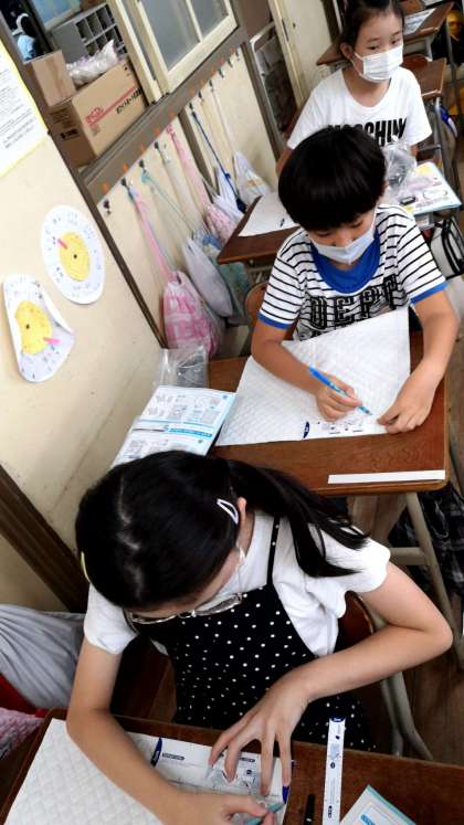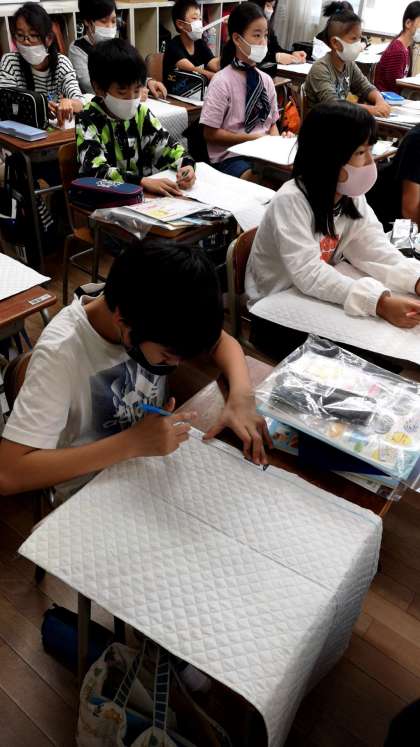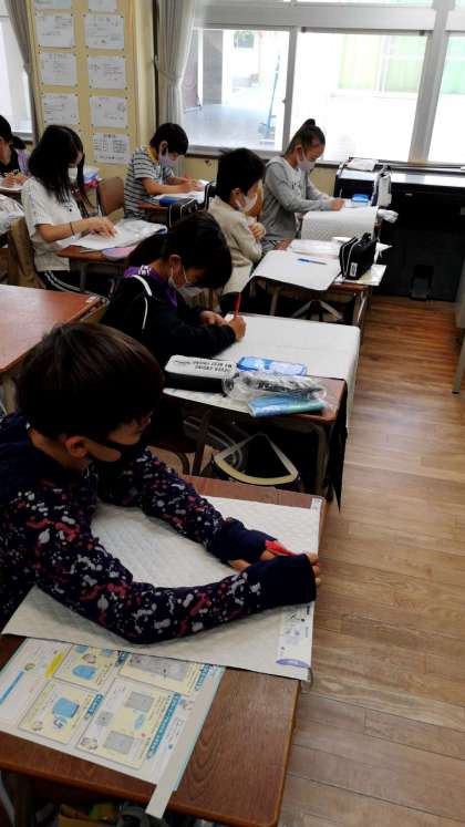 五年生が裁縫の学習をしています。