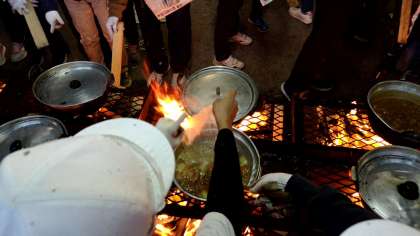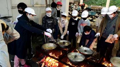 今年度は、火をおこしてルーを投入して煮るだけですが、