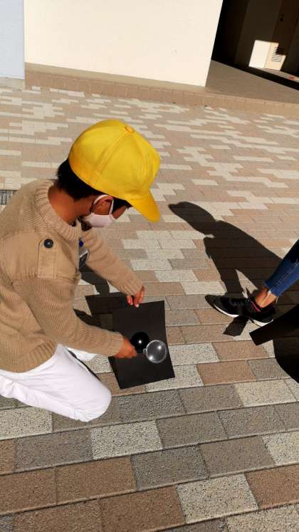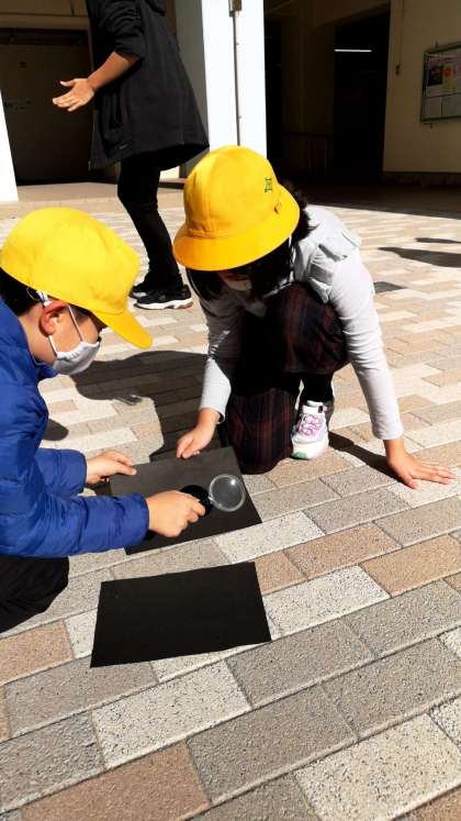 虫眼鏡で日光を集めています。