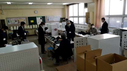 一年生用として移設されたタブレットの設定作業を、業者の方がしてくださっています。