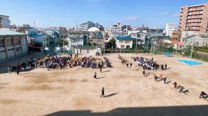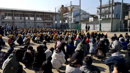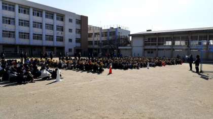 「警察が対応し、安全な状態になった後に臨時全校集会を行う」練習です。