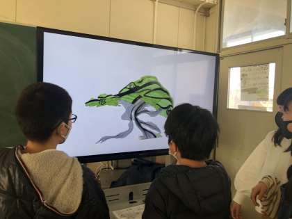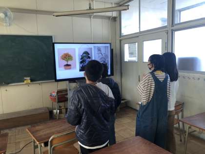盆栽の写真を見て、高価な盆栽がどれかを考えています。