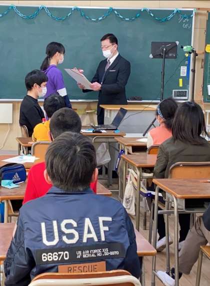 他のクラス・学年は、テレビ画面を見ながらお話を聞いたり、校歌を視聴したりしました。