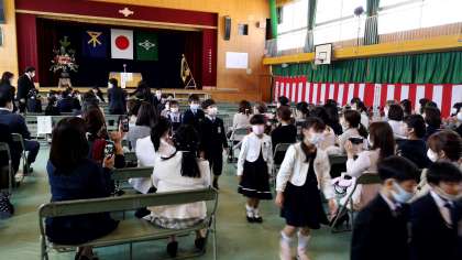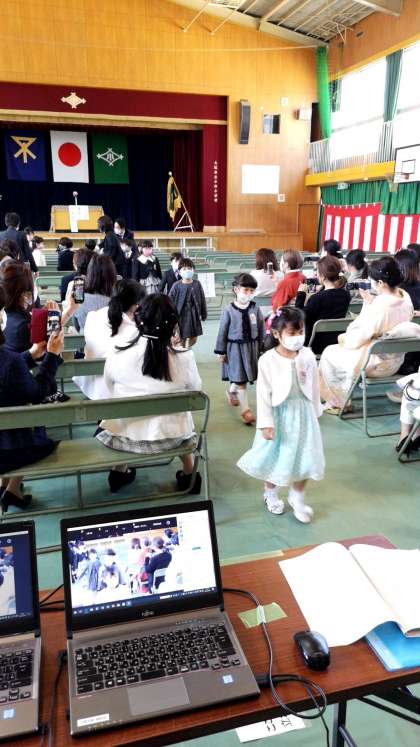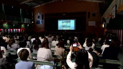 二年生から、一年先輩として、かんげいのメッセージや歌声、合奏が届きました。