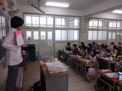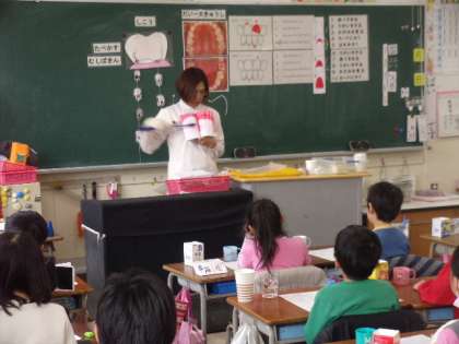歯科衛生士の方に来ていただき、歯みがき教室をおこないました。