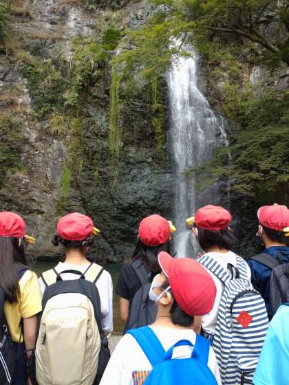 箕面大滝を見て子どもたちは大興奮です!