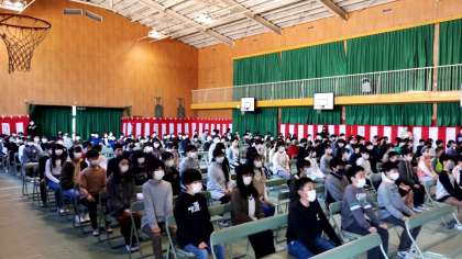 金曜日の卒業式に向け、六年生が練習しています。この日は五年生が参観しました。