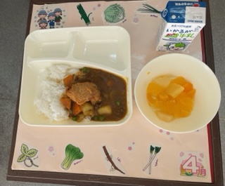 大人気のカレーライスにカツをのせて、カツカレーライスです。フルーツゼリーも登場しました。