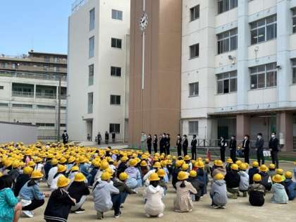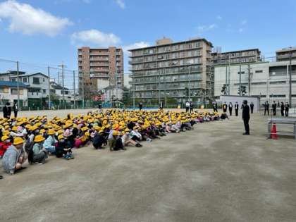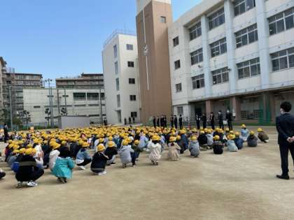 始業式の前に着任式が行われました。たくさんの先生方の着任があり、少し時間がかかりましたが、子どもたちは新しく着任された先生方の挨拶をしっかり聞くことができていました。顔を合わせて行う着任式はとても素敵でした。