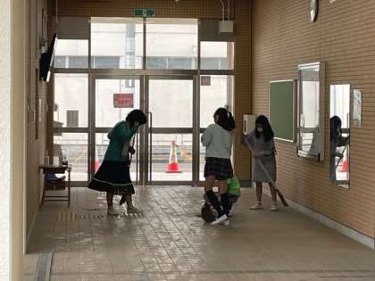 今日も子どもたちは学校の清掃活動に頑張っています。