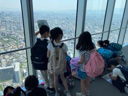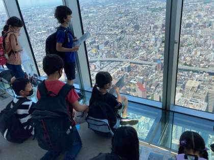 展望台では、大阪市のそれぞれの方角にどんな場所や建物があるのか調べました。