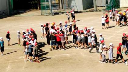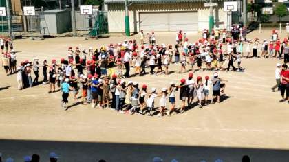 運動場に集まって、みんなで『じゃんけん列車』をして遊びました。