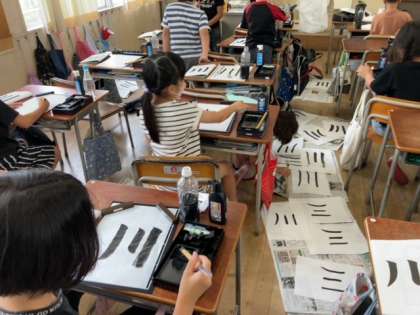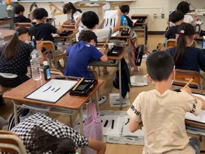 習字の学習が始まりました。前回横の線を書く練習をしました。今回は縦の線を書く練習として「川」の字を書きました。まだ2回目ですが、とても上手に書くことができました。