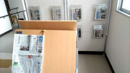 児童が自由に新聞が読めるように、職員室の近くに、新聞閲覧コーナーを設置しました。