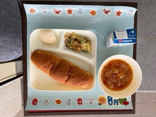 9月1日(木)のこんだては、豆乳マカロニグラタン[米粉]、トマトスープ、なし(二十世紀)でした。