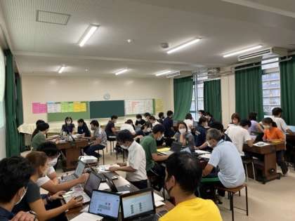 これからの「学び」に必要な「コミュニケーション力」の向上と対話的な授業のあり方について放課後に研修を行いました。