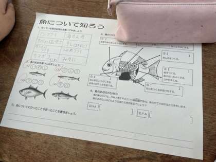 今日は栄養教諭の田中先生が、5年生に栄養指導をしてくださいました。魚のつくりやはたらき、魚のあぶらの秘密を学習しました。