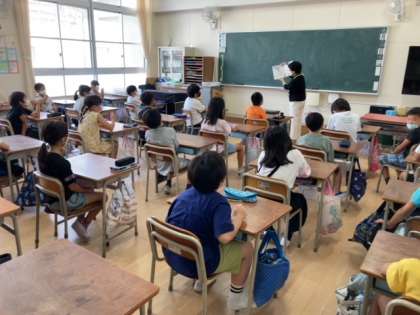 今日は図書ボランティアの方に読み聞かせをしていただきました。みんな真剣にお話を聞いていました。