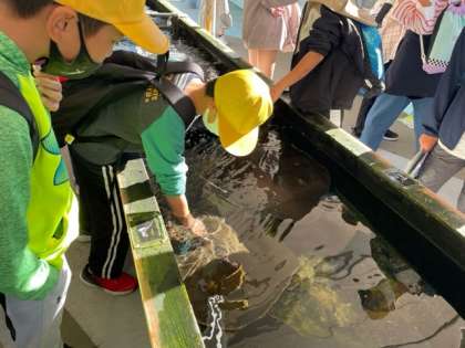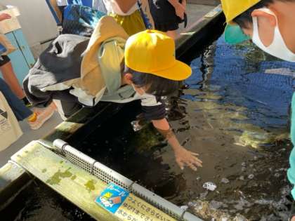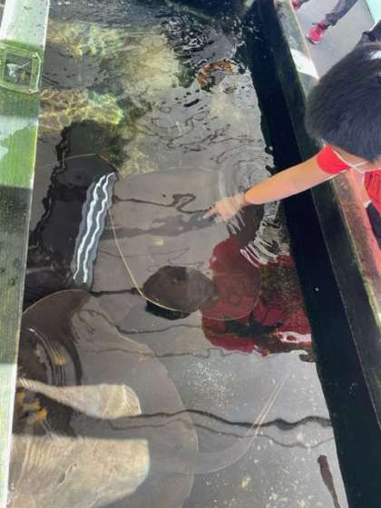 ふれあいコーナーで、エイを触りました!