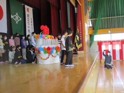 みんなで、お祝いのバースデイケーキを作りました。