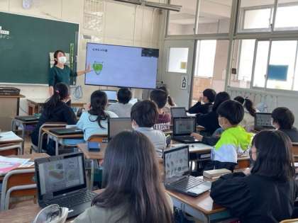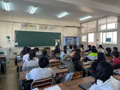 栄養教諭の田中先生が栄養指導をしてくださいました。今回は「旬について知ろう」ということで、色々な季節の旬の食べ物を教えて頂きました。