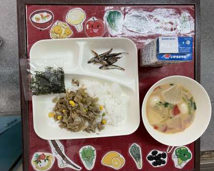 1月13日(金)のこんだては、きんぴらちらし、ぞう煮、ごまめでした。