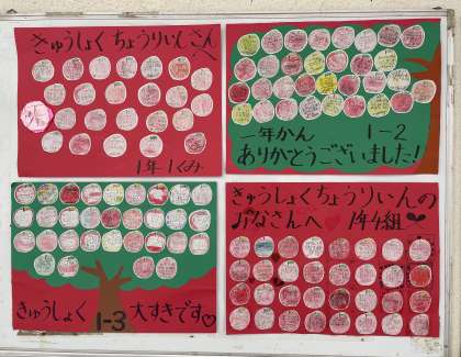 好きな給食の絵を描いたり、りんごがたくさんなっていたり、とてもかわいいです。