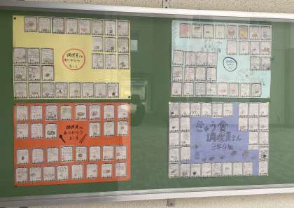 給食室前の掲示板に今週は1年生と3年生からの感謝状を掲示しています。
