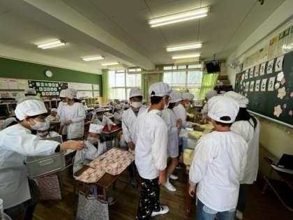 配膳はお兄さんお姉さんとして、6年生がお手伝いしてくれました