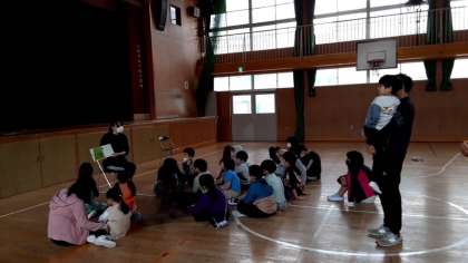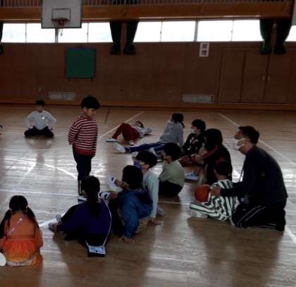 自己紹介が終わると、講堂で新しいお友達と体を動かして楽しみました。