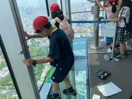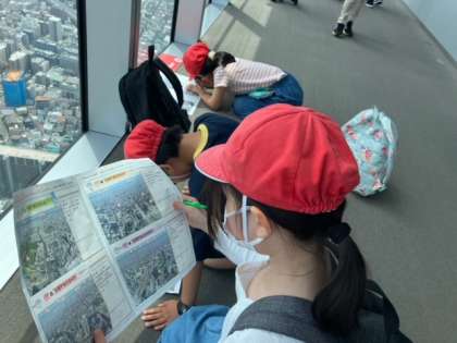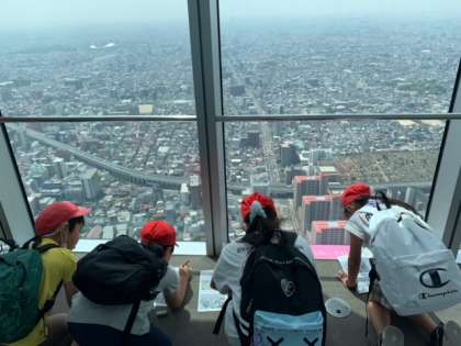 あべのハルカスでは、グループごとに活動しました。高い所から大阪市の様子がよく分かりました!