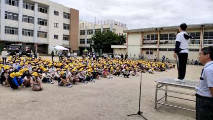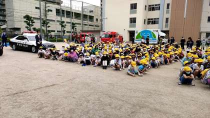 という想定で、避難訓練を行いました。前回の訓練よりも、迅速に集合できました。