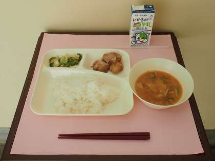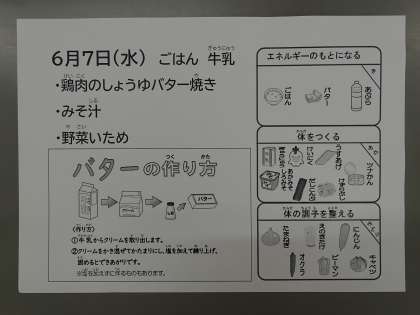 今日の給食には、鶏肉のしょうゆバター焼きが登場しました。
