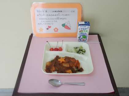 今日の給食には、ミックス海そうのサラダが登場しました。
