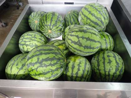 今日のすいかは、鳥取県産のもので、小松小学校には14玉届きました。