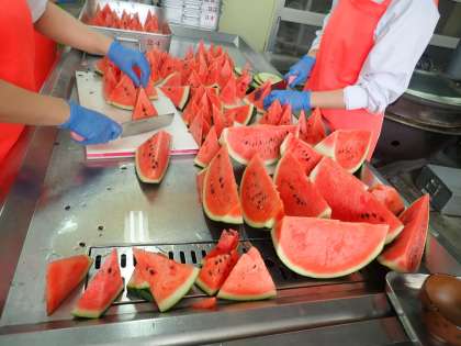 真ん中の最も甘い部分がみんなに行き渡るようにと、1玉を64等分にしています。
