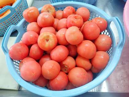トマトには、皮膚やのど、鼻の粘膜をじょうぶにし、体の抵抗力を高めるビタミンCやカロテン、おなかの掃除をする食物繊維が豊富です。