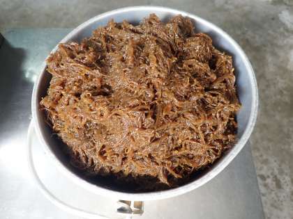 ヤファラジューシー(雑炊風ごはん)は、よもぎ、いもの葉、いかすみが入ったものが多いです。