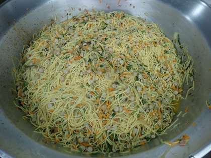 今日の給食には、ウインナーときのこの和風スパゲッティが出ました。