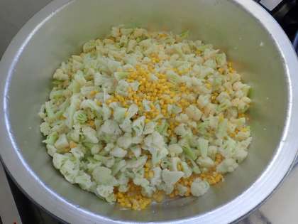 今日の給食には、カリフラワーとコーンのサラダが出ました。