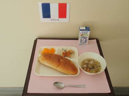 大阪市の給食では、フランスのほかに、韓国・朝鮮や中国、イタリア、インド、ドイツなどいろいろな国の料理が出ます。