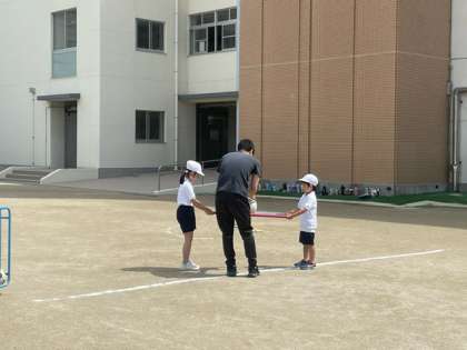 写真は石倉先生からの挑戦を受けている子どもたちと、サーキットの一部のお手本をしてくれている子どもたちです。